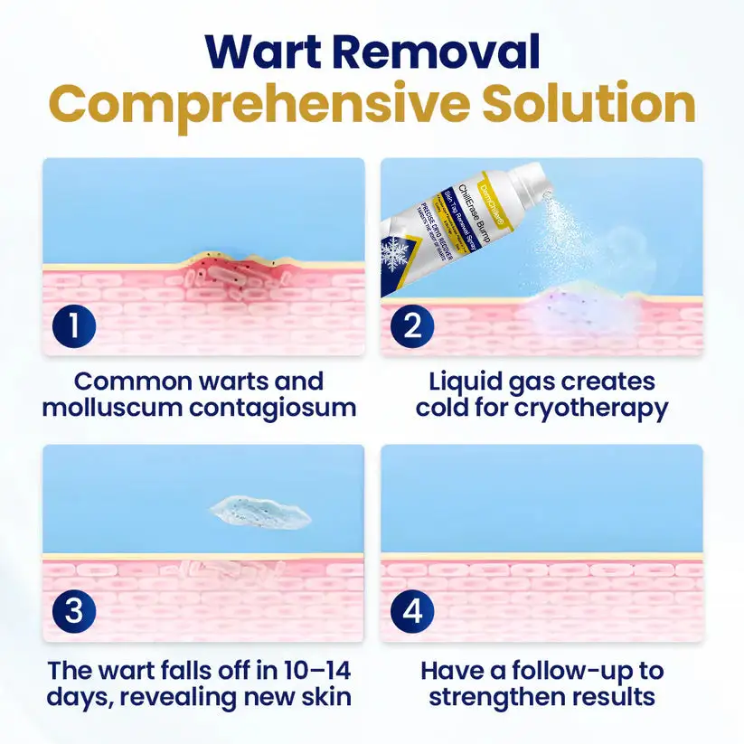 Една кутия сDermChiller® ChillErase Bump & Skin Tag Renewal Spray заменя необходимостта от множество продукти за корекция на повърхността. Неговата усъвършенствана охлаждаща формула работи бързо, за да усъвършенства текстурата и да успокои раздразнението — придавайки на кожата ви дълбоката, трайна чистота, която обикновените кремове и лепенки просто не могат да постигнат.
