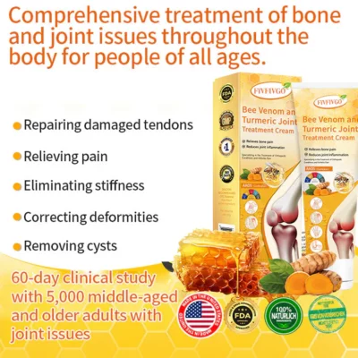 Ако се борите с болки в ставите, артрит или хронично възпаление, кремът за лечение на стави с пчелна отрова и куркума Fivfivgo™ е вашето идеално решение – 100% естествено и разработено с водещи ревматолози, за да се гарантира безопасност и ефективност.