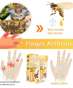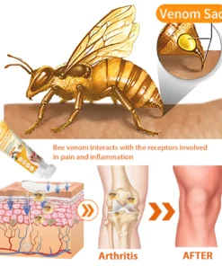 Пчелната отрова е естествен токсин, произведен от пчелите, богат на биологично активни компоненти. Неговият основен компонент, мелитин, е известен със своите мощни противовъзпалителни и болкоуспокояващи свойства, като ефективно намалява дискомфорта и отока, свързани с артрита. Пчелната отрова също съдържа различни ензими, аминокиселини, захари, липиди и витамини, които подпомагат възстановяването на тъканите на ставите и подобряват гъвкавостта. Освен това компоненти като кининаза и фосфолипаза А2 подобряват притока на кръв, подпомагайки регенерацията на ставите.