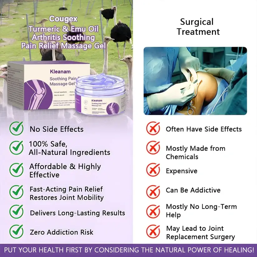 ✅ Мощни натурални съставки – Формулирани с органична куркума и чисто масло от ему за намаляване на възпалението, смазване на ставите и насърчаване на дългосрочно заздравяване.