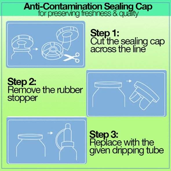 - След почистване, капнете 3 капки върху дланите и внимателно натиснете върху кожата, докато се абсорбира напълно. Продължете с обичайната си рутина (ако има такава). Когато кожата ви стане по-хидратирана и абсорбира ниацинамид с по-голяма лекота след първите няколко нанасяния, увеличете до 6 капки на нанасяне и след това постепенно напълнете половин капкомер.